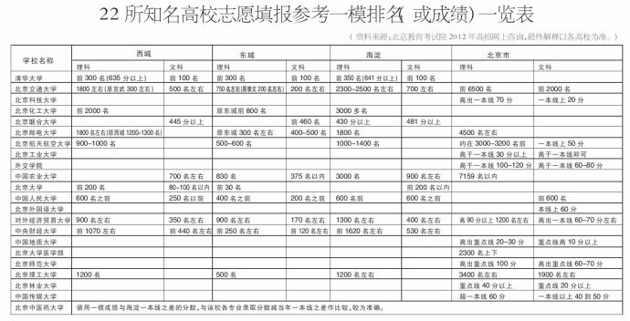 22所知名高校志愿填报参考一模排名(或成绩)一览表
