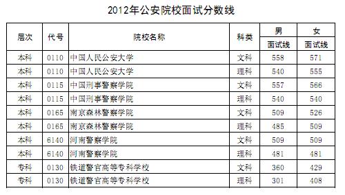 现将军队、公安和部分司法类院校面试分数线公布如下: