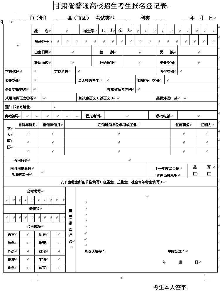 点击下载:2013年甘肃省普通高校招生考生报名登记表.doc