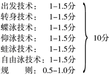 2. 各势均以中等速度游进,只作技术评定,不计时间。