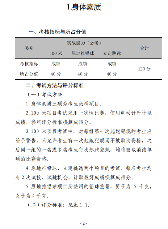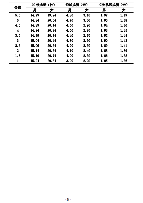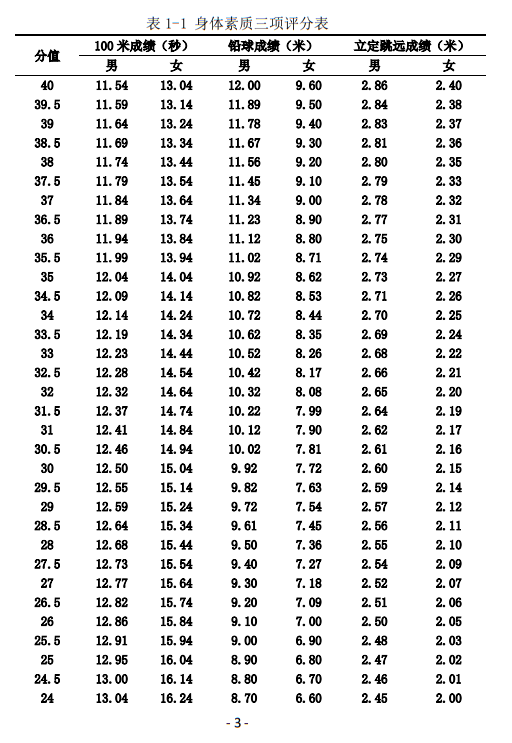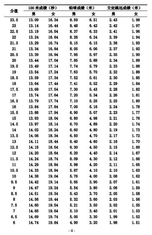 河南省普通高校招生体育类专业身体素质考试内容和评分标准(2023 版)