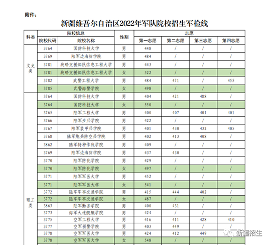 根据《关于做好2022年军队院校招收普通高中毕业生工作的通知》(新招委〔2022〕7号)文件规定,新疆军区招生工作办公室结合报考军队院校考生相关情况,按比例划定